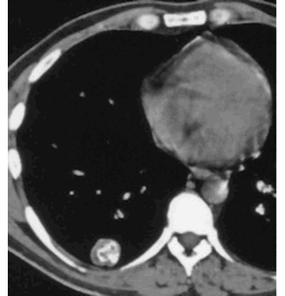 DENSITY - contains central calcification, clearly seen on these windows (soft tissue)